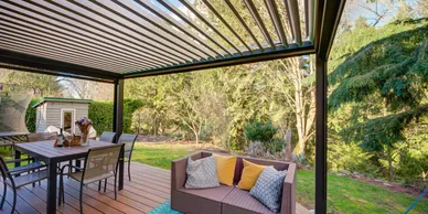 Durable elegant pergolas provide protection from Sedona sun and Munds Park snow. With motorized louvers you can adjust for shade, monsoon or evening at the touch of a button!